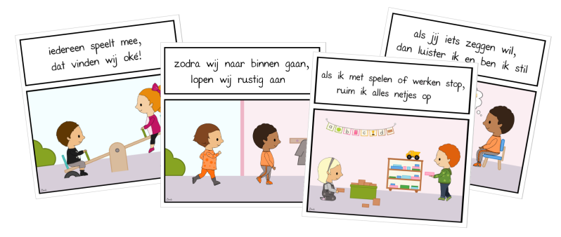 Ik heb een aantal gedragsverwachtingen gemaakt, die een aantal afspraken op een positieve manier weergeven. Met natuurlijk vrolijke en duidelijke plaatjes!